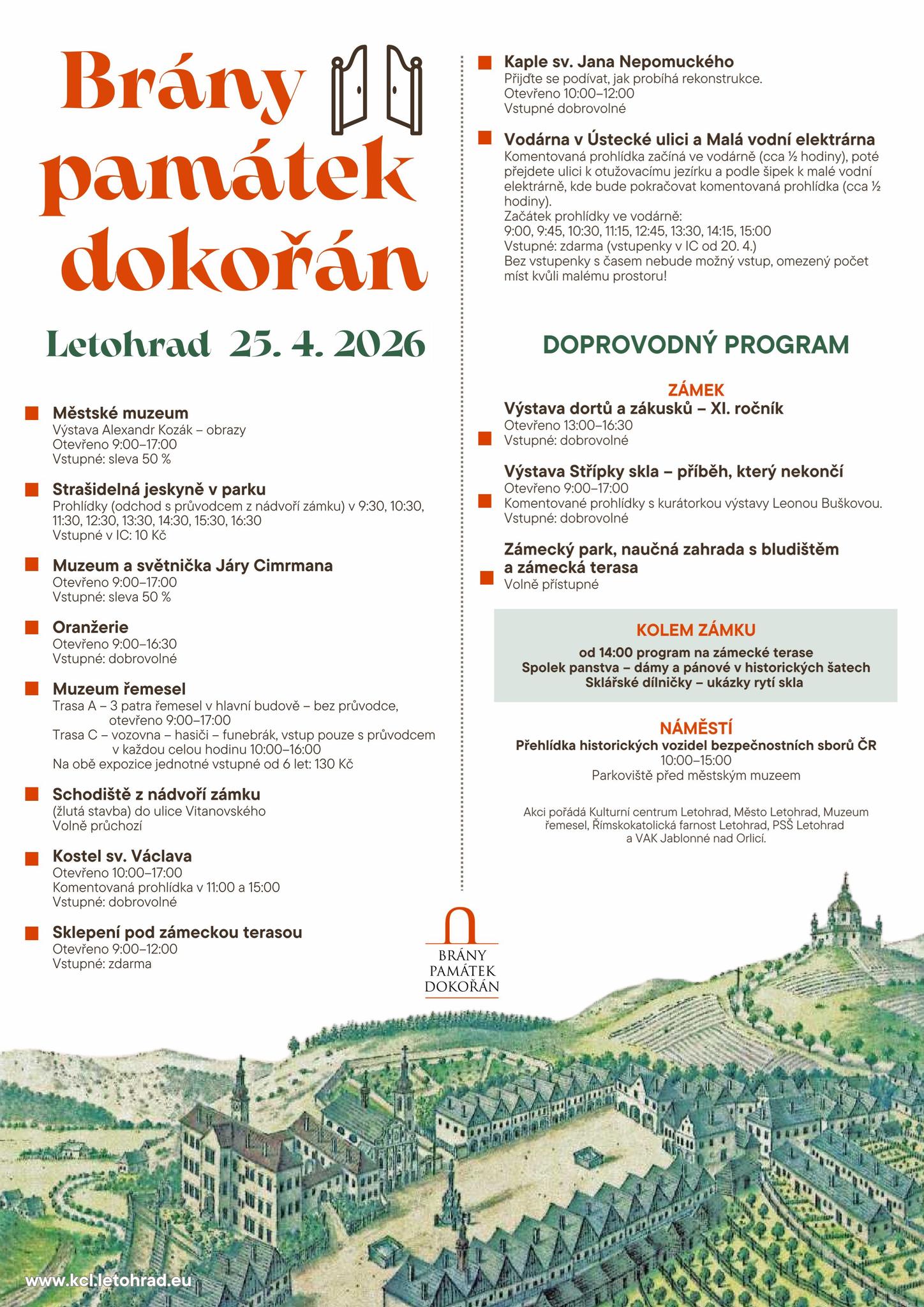 Blíží se turisticky oblíbená akce Brány památek dokořán 2026. Všechny letohradské pamětihodnosti se otevřou v sobotu 25.4.2026 . Do zámecké oranžerie bude …