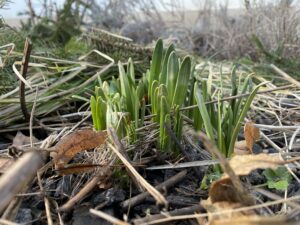 Teplejší počasí ale probouzí i další cibuloviny – na povrch se derou narcisy a dokonce i kandík, který nám dává jasně najevo, že jaro už klepe na dveře.